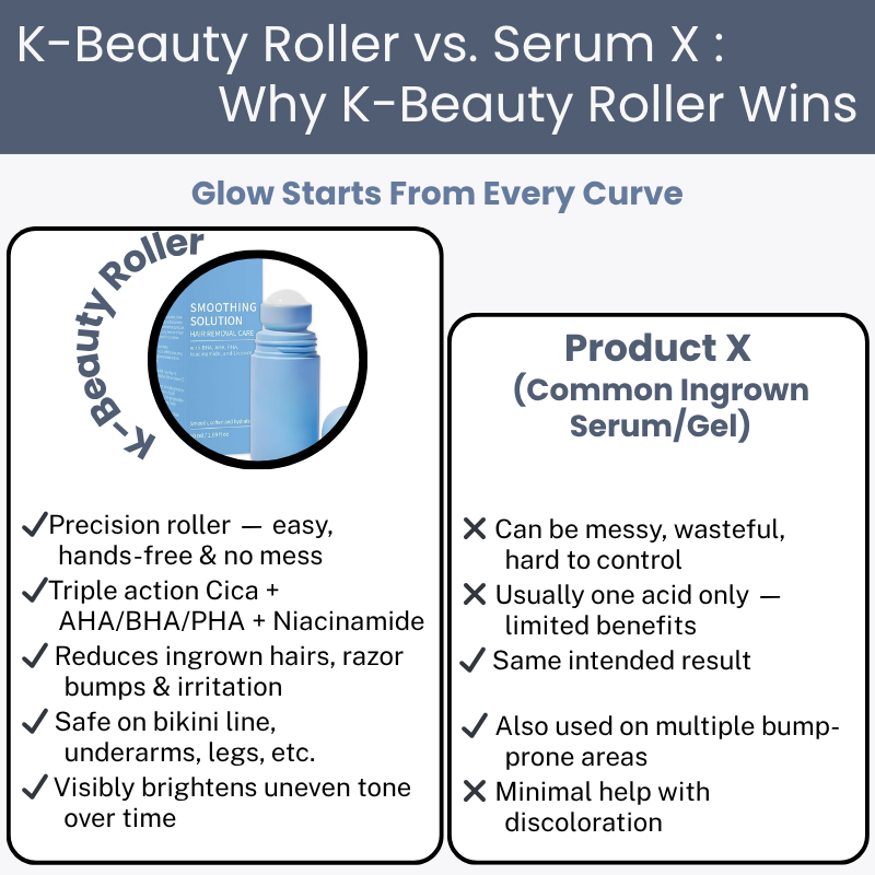Prevents and treats ingrown hairs + razor bumps with a gentle, daily roller — for skin that stays soft and irritation-free after every shave.